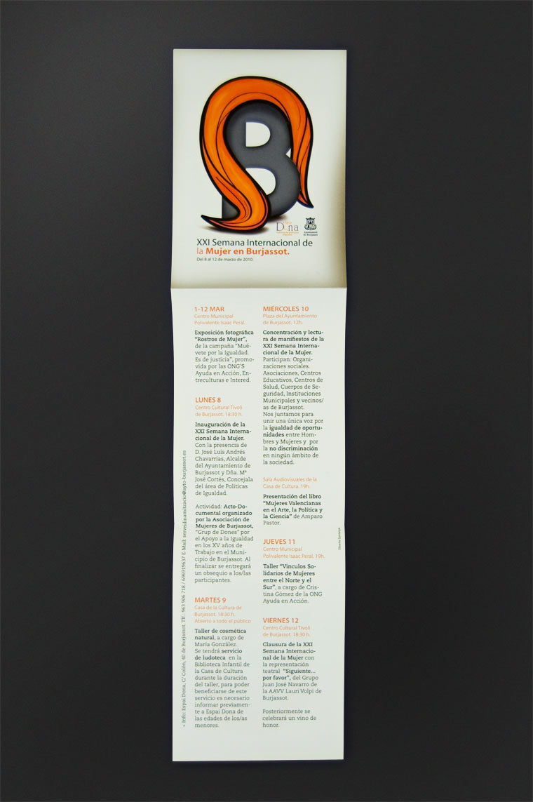 Diseño de campaña formada por cartel en dos idiomas, libretay políptico, comunicando la programación de actividades de la semana