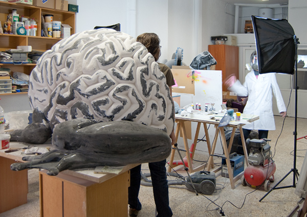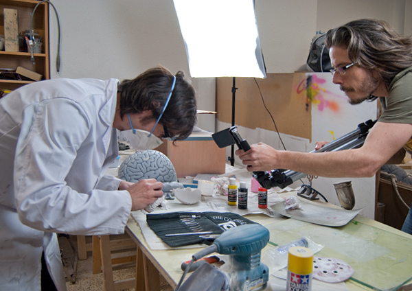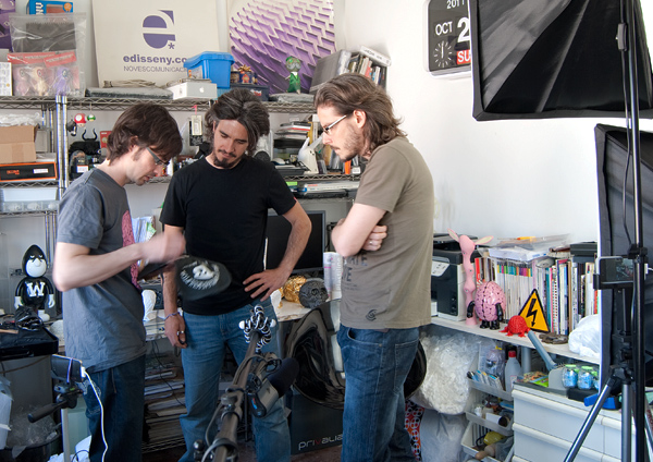 Poco después entramos en materia. Montamos las luces, el micro y los teléfonos, y comenzó la charla. Hablamos sobre el éxito alcanzado con Jumping Brain y sobre cómo es su proceso de trabajo entre otros temas. Nos extendimos hasta la hora de comer.
