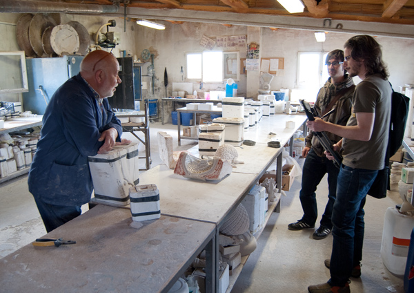De vuelta a la urbe nos dirigimos al taller de Emilio, donde acabamos el día filmando cómo trabaja las piezas cuando salen de los moldes.